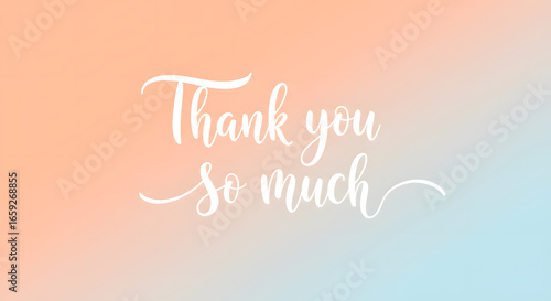 "Thank you so much" in white script on an orange and blue gradient. Greeting card background