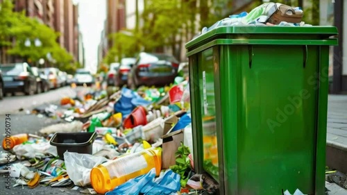 "Street with Overflowing Garbage Bins"