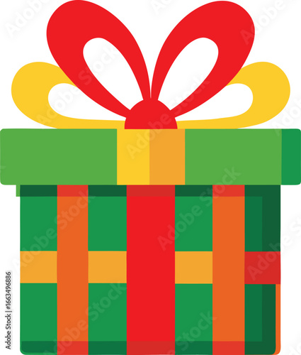 "Wrapped Gift Icon – Flat Design Colorful Present with Ribbon"