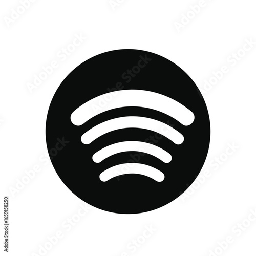 "Spotify Logo Icon – Black Circle with Three Curved White Lines – Symbol of Music Streaming, Audio Content, and Digital Entertainment – Ideal for Media Dashboards, App Interfaces, UI Kits, and Themed