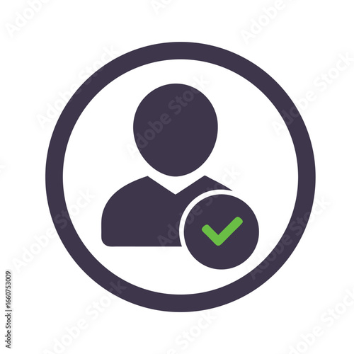 "Verified User Icon – Silhouette with Green Checkmark – Symbol of Approved Identity, Account Confirmation, and Successful Login – Flat Vector for UI/UX Dashboards, Authentication Systems, and Profile
