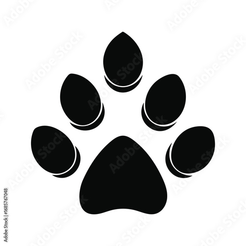 "Animal Paw Print Icon – Black Silhouette Vector Illustration Featuring Central Pad and Four Toe Pads – Representing Wildlife, Pets, Tracking, and Nature – Ideal for UI/UX, Educational Materials, Bran