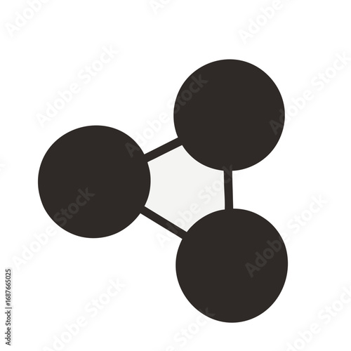 "Molecule Structure Icon – Black Vector Illustration of Three Connected Circles Forming a Triangular Bond – Representing Chemistry, Science, Innovation, and Molecular Geometry – Ideal for UI/UX, Educa