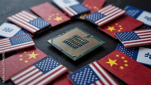Young Plant Growing from Microchip on Circuit Board Illustrating Green Technology and Sustainable Innovation