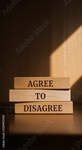 "Agree to Disagree" blocks. Symbolizes respectful communication, open dialogue, conflict resolution, and acceptance of differing opinions.