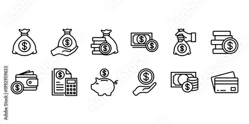 Finance and Business Icons Collection Dollar Euro Security Banking Transparent Background
