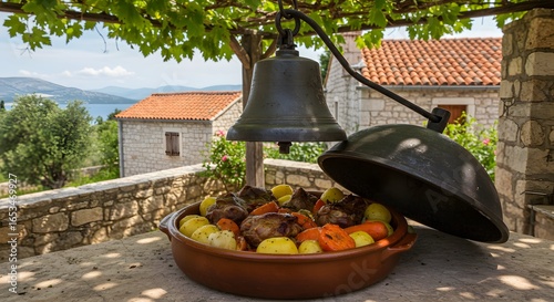 Croatia element concept. Traditional food and dishes. Sightseen of european country. Oil and fish with potato and lobsters. Cartoon flat vector illustration isolated on white background
