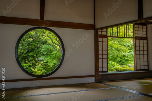 Japanese beautiful scenery - Window of enlightenment and window of delusion in Genko-an Temple