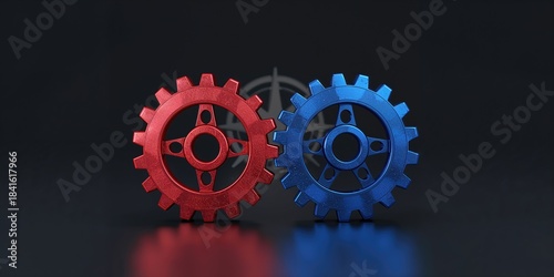 Cogwheels and ascending arrows representing operational excellence technology optimization innovation and growth in production